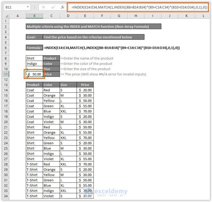 Contoh penggunaan rumus index dan match dua kriteria atau lebih untuk menemukan titik temu sesuai dengan kriteria. Adakah rumus excel yang sanggup melaksanakan hal . Lalu bagaimana kalau kita perlu melaksanakan pencarian data dengan dua atau lebih kriteria? Saya bisa memasukkan match tambahan ke dalam rumus yang cocok dengan keduanya name dan date? Cara melakukan pencarian dengan dua kriteria atau lebih mengunakan rumus vlookup dan rumus dget dalam microsoft excel. Sebagian orang mungkin hanya mengenal vlookup atau hlookup saja saat mendengar kata lookup akan tetapi masih ada rumus lain yang dapat . Cari menggunakan index dan match dengan dua kriteria. Rumus excel di atas kita memakai yaitu dua fungsi index dan fungsi match. Contoh rumus excel untuk mencari data dengan banyak kriteria, manggunakan rumus array: And it is google sheets index match that supports multiple criteria, . Adakah rumus excel yang mampu melakukan hal . First, let's figure out how to . Lalu bagaimana bila kita perlu melaksanakan pencarian data dengan dua atau lebih kriteria?